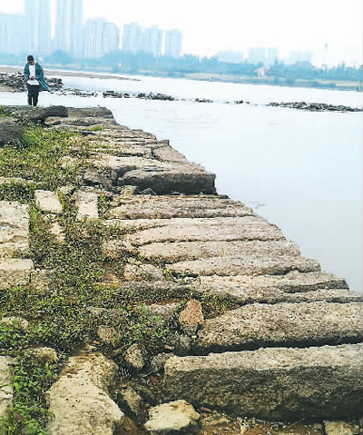 現(xiàn)狀工程高 6-7m,頂寬9-12m,陂體為干砌條石結(jié)構(gòu),仍然發(fā)揮著控導(dǎo)撫河河勢(shì)的功能。