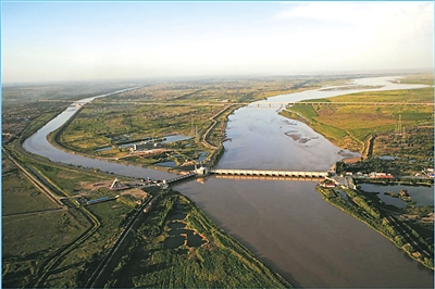 圖為內(nèi)蒙古河套灌區(qū)三盛公水利樞紐渠首。
