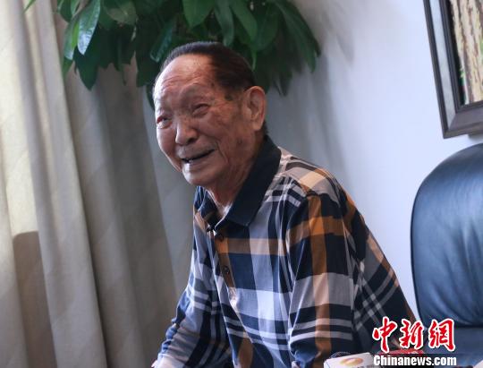 袁隆平9月5日在湖南長(zhǎng)沙接受媒體采訪(fǎng)時(shí)稱(chēng),要健康快樂(lè)超百歲。劉雙雙 攝