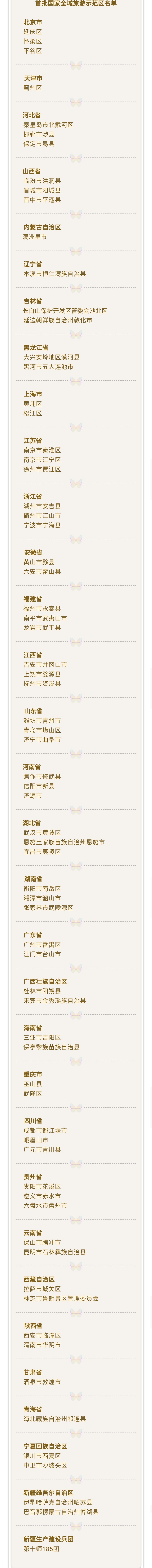 中新網客戶端9月25日電 (李金磊)25日,文化和旅游部正式公布#首批國家全域旅游示范區名單#,包括北京市延慶區、秦皇島市北戴河區、張家界市武陵源區、重慶武隆區、臨汾市洪洞縣、上海市黃浦區、南京市秦淮區、青島市嶗山區等71個示范區入選。看名單有你的家鄉嗎?