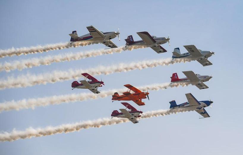 ●11日,山西太原,2019堯城(太原)國際通用航空飛行大會特技飛行表演拉開帷幕。