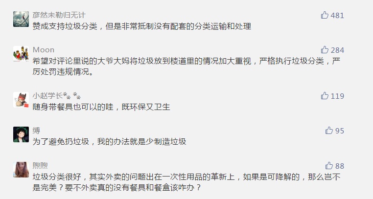 對于垃圾分類,網友紛紛留言表示支持。