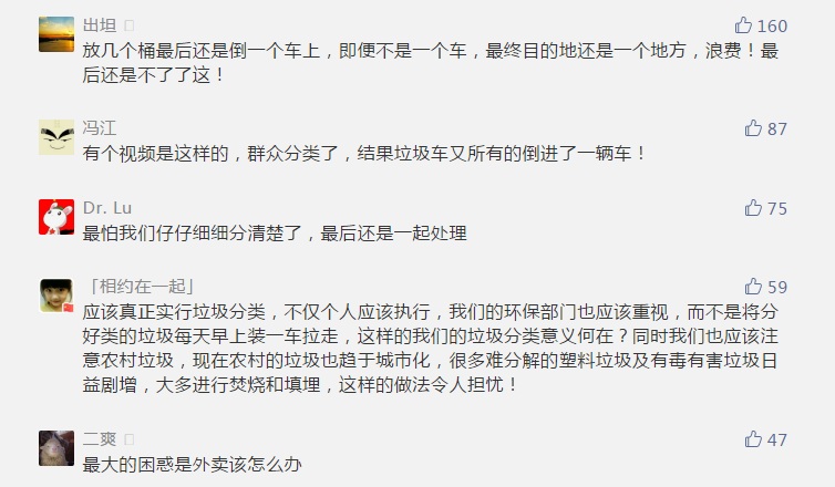 此外,還有網友擔憂分類的垃圾會被倒進一輛車運走。