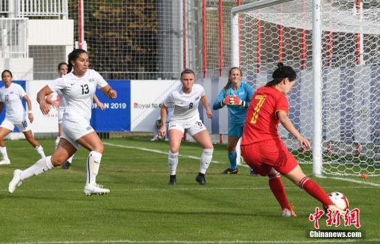10月21日,第七屆世界軍人運動會女足小組賽在武漢舉行。中國八一女足(紅衣)4:0輕取美國女足,以小組第一名的成績晉級。中新社記者 安源 攝
