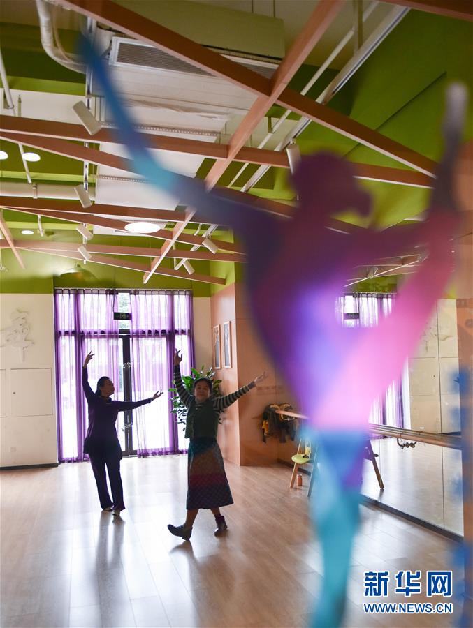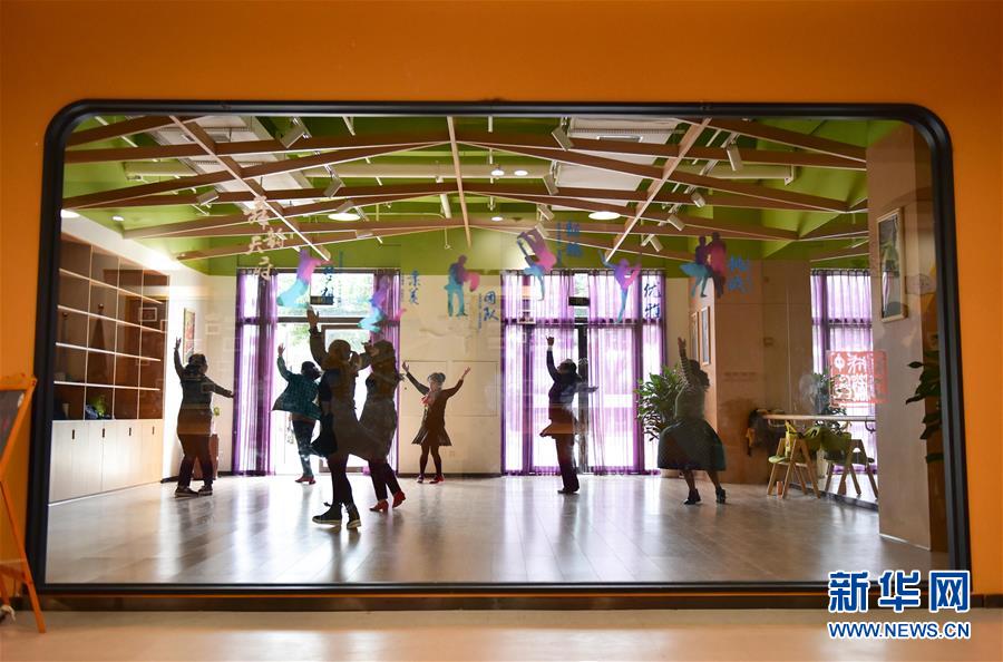 11月13日,市民在成都金牛區新橋社區黨群服務中心內跳舞。 新華社記者 薛玉斌 攝