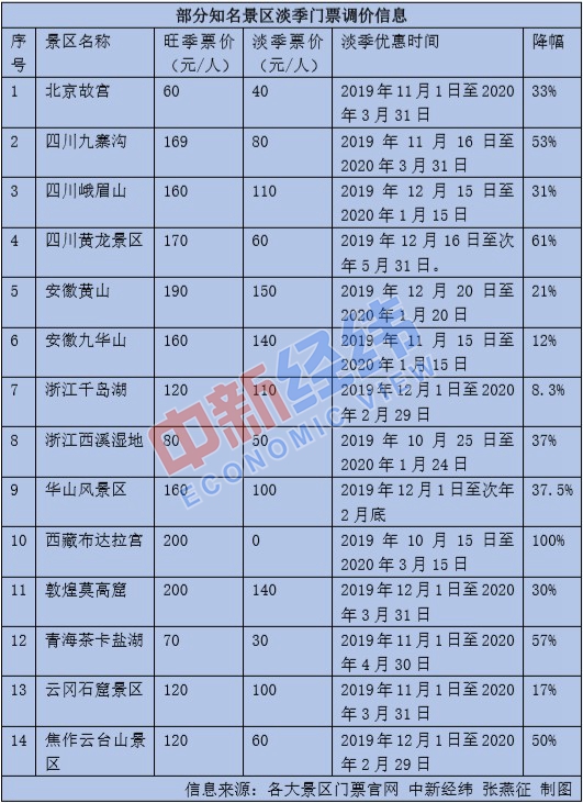 中新經緯客戶端12月5日電(張燕征)自11月以來,全國多地景區陸續實施淡季門票政策,四川黃龍景區、敦煌莫高窟等知名景區淡季門票價格相較于旺季,降幅為8%至60%左右,其中,布達拉宮、大連棒棰島等景區還實行了免票政策。