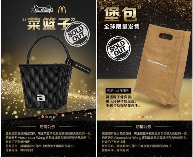●近日,麥當勞宣布將與著名華裔設計師推出聯名產品,售價99元的黑金M手包,以及全球限量300只、售價5888元的黑金籃子。