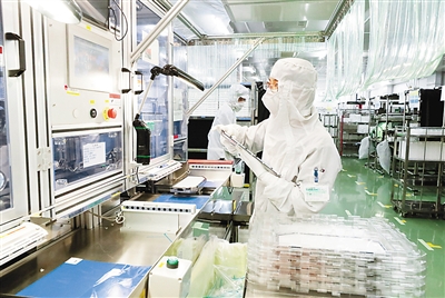 近日,日資企業江蘇蘇州高新區晶端顯示精密電子(蘇州)有限公司員工正在緊張生產中。華雪根攝(人民圖片)