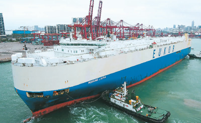 不久前,裝載著來自卡塔爾的430輛平行進口汽車的滾裝貨船“勞拉”輪緩緩靠泊海口秀英港20號泊位,這是海南自貿區政策實施以來的首艘汽車外貿船。楊冠宇攝(新華社發)