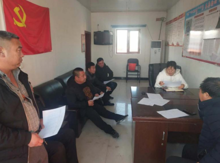 △大年初一,秦紅(左排前二)與同事開會部署疫情防控工作