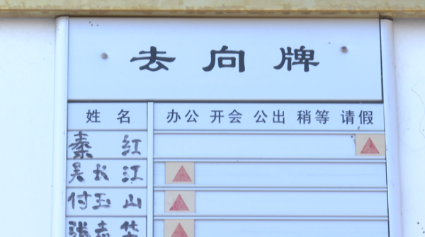 △西寶龍山嘎查黨群活動中心的去向牌上,秦紅“請假”