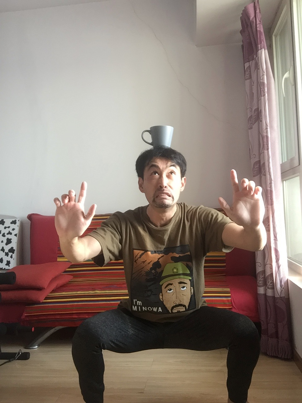 圖為美濃輪泰史在隔離期間練功(圖片由受訪者提供)