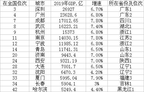 15個副省級城市2019年經濟情況