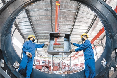 今年以來,江蘇省海安市在科學(xué)防控疫情的同時(shí),及時(shí)為企業(yè)解難紓困,幫助民營企業(yè)迅速恢復(fù)產(chǎn)能、拓展國內(nèi)外市場,保持經(jīng)濟(jì)平穩(wěn)運(yùn)行,確保務(wù)工人員有崗上、有活干、有錢賺。圖為5月17日,在海安市白甸鎮(zhèn)一企業(yè)車間內(nèi),工人在趕制建材裝備訂單。翟慧勇攝(人民視覺)