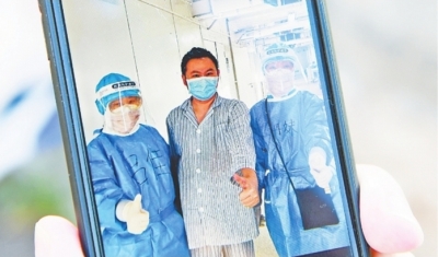 2月20日,萬春暉兩次核酸檢測結果為陰性,達到出院標準。醫護人員送萬春暉走出病區。間隔10米遠,萬春暉和他們隔空擁抱,一句“珍重”頓時濕了眼眶。萬春暉說:“沒有經歷過此情此景,很難體會醫患之間這種感情,我們是生死之交。”