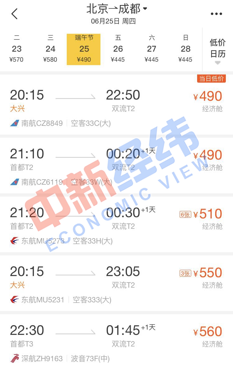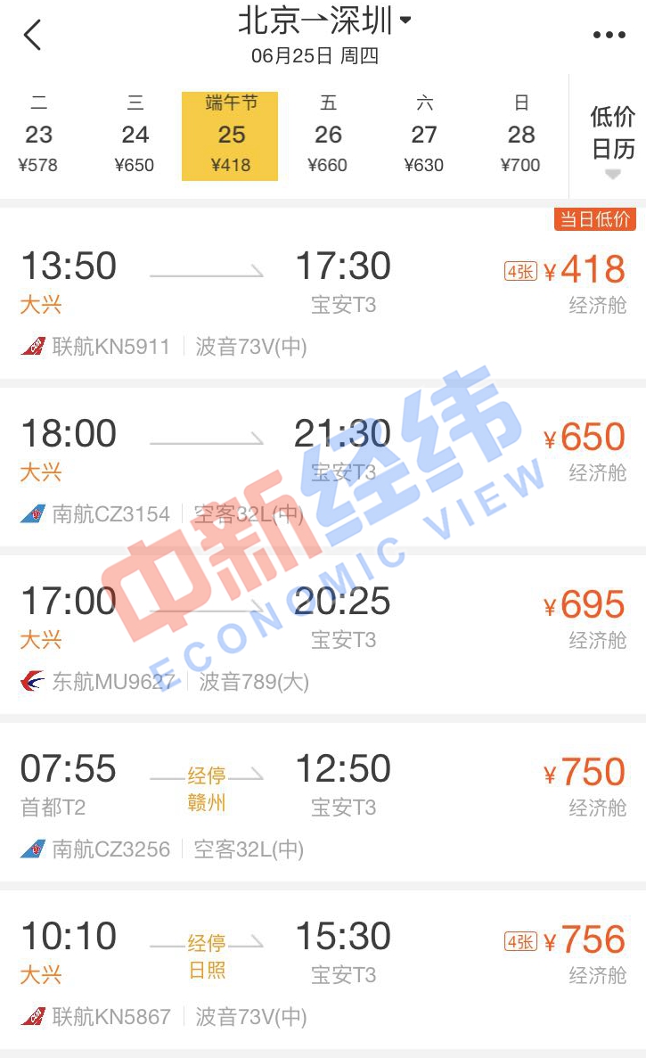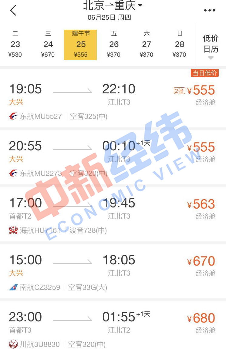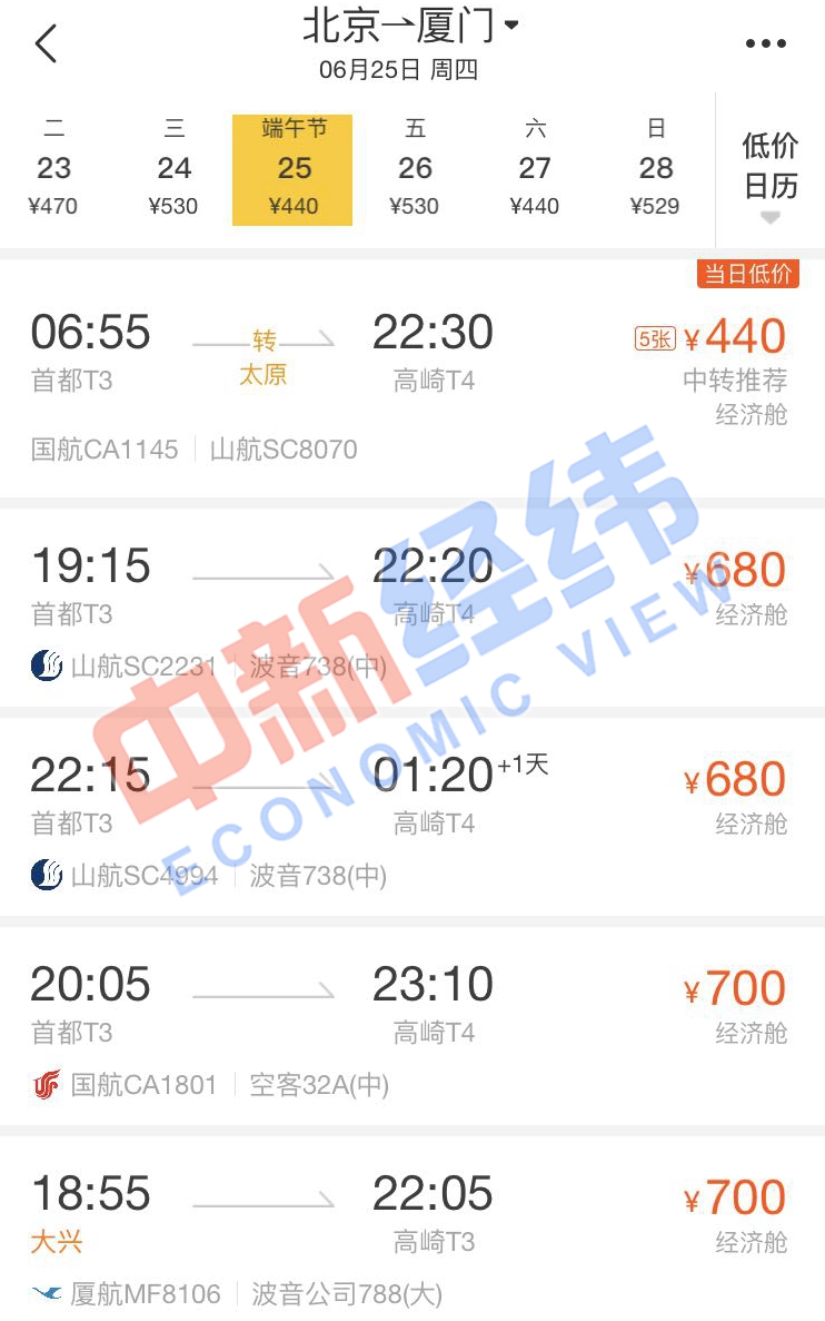 面對(duì)即將到來(lái)的端午節(jié)假期,即使沒有買到高鐵票也沒關(guān)系。通過第三方售票平臺(tái)發(fā)現(xiàn),端午節(jié)當(dāng)天,北京到多個(gè)城市的機(jī)票價(jià)格比高鐵還實(shí)惠,個(gè)別航班甚至便宜超一半。