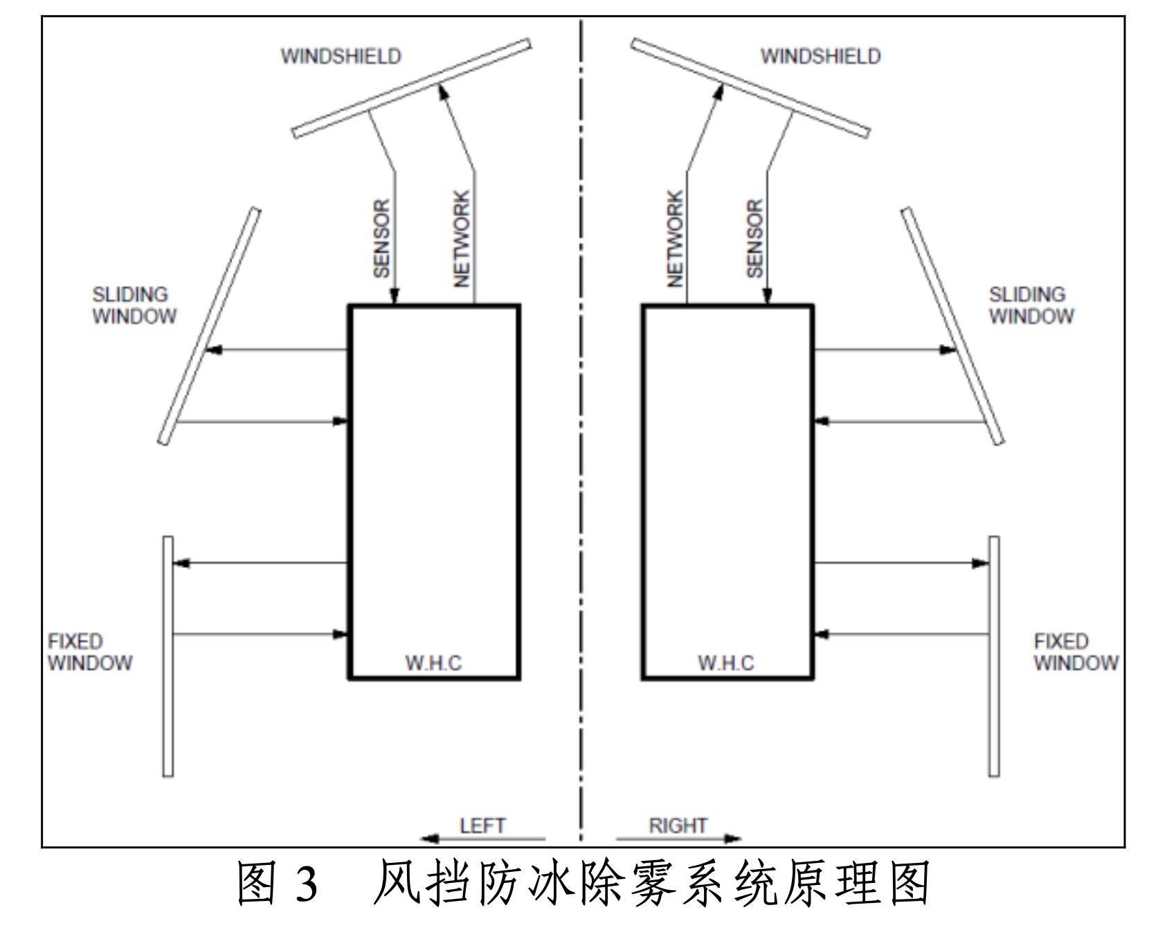 A320系列飛機的風擋系統由左右2個子系統組成,每個子系統包括1塊風擋、1個滑動窗、1個固定窗,1臺風擋加溫計算機(WHC)。其中,WHC1對應左側,WHC2對應右側。風擋溫度調節和窗溫度調節是獨立的。電加溫系統在發動機啟動時自動啟動,也可通過開關按鈕來進行控制。在結冰或有霧的情況下,通過電加熱確保風擋和窗的透視度。