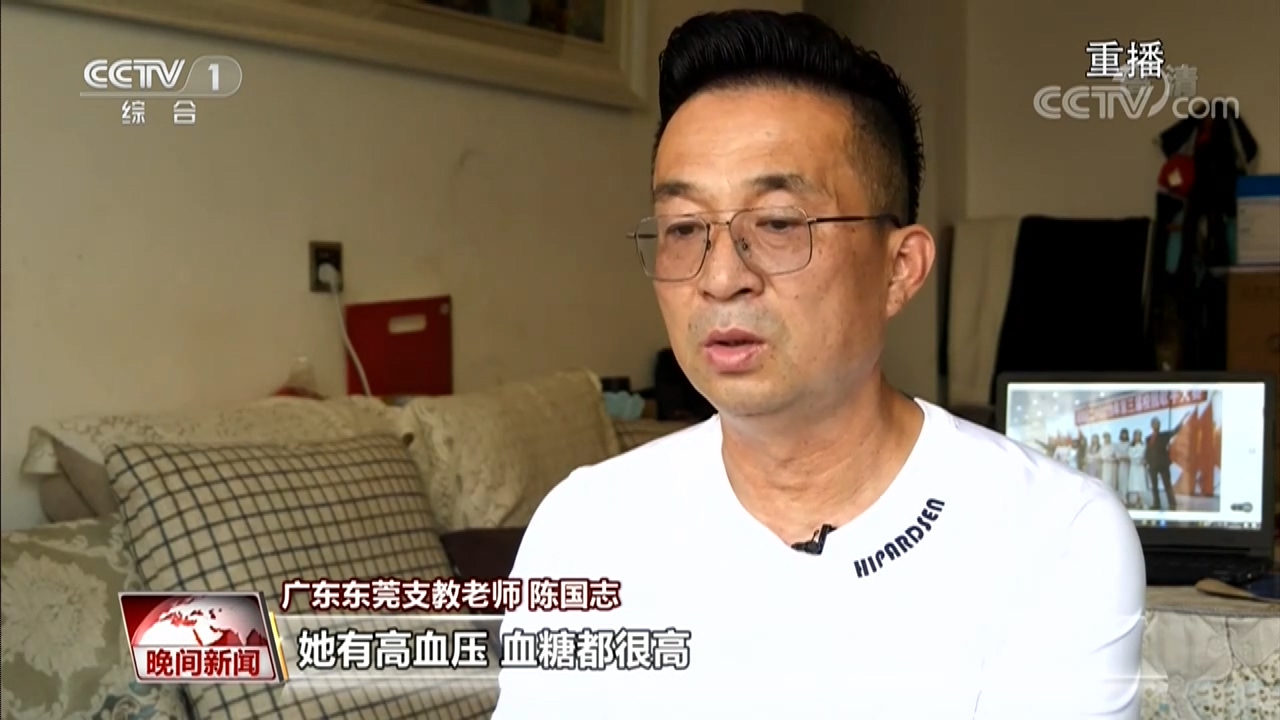 廣東東莞支教老師 陳國(guó)志:(當(dāng)時(shí))跟校長(zhǎng)談了跟領(lǐng)導(dǎo)談了,他們非常支持我,可是我有點(diǎn)下不了決心,因?yàn)槲业膵寢尭乙恢鄙钤谝黄?,她有高血壓,血糖也一直都很高,(我?dān)心)到這么遠(yuǎn)來(lái)能不能適應(yīng)。