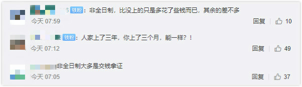 企業冷眼相看,社會輿論對“非全”也并不寬容,“拿錢買證”“學歷水”“上了幾個月學”不絕于耳。