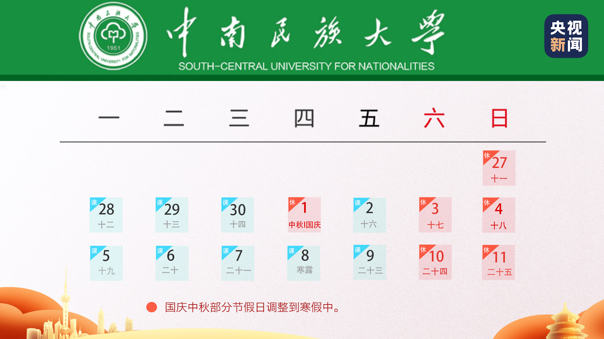 已公布假期安排的高校中,基本都安排了補課或上課,放假都不足8天 ↓??↓??↓?
