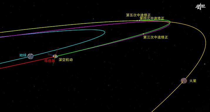 實施第三次軌道中途修正,是為了在深空機動后,對轉移軌道再次進行微量調整,使火星探測器按照預定時間與火星交會。