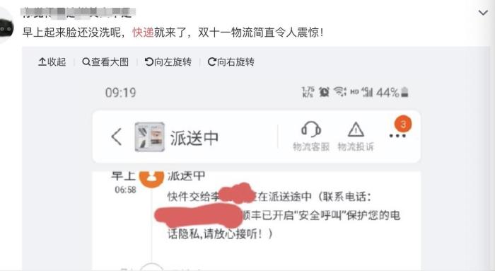 有人1日凌晨剛付尾款,早上被快遞員叫醒收貨;有人還想要退貨,結果快遞已送到家門口了。網友們甚至懷疑,是鄰居在安排發貨……有網友就表示:“凌晨1點付的尾款,早上順豐已經在派送了,我人傻了”。