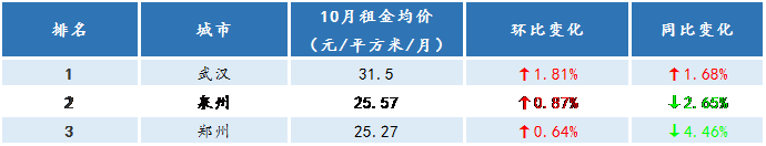 從環比上漲城市來看,本月租金環比上漲的TOP3城市為武漢、泉州、鄭州。疫情后,租賃市場受沖擊較大,其中武漢作為本次疫情的中心受影響嚴重,隨著疫情的影響逐步褪去,租賃市場活躍度逐漸提升。