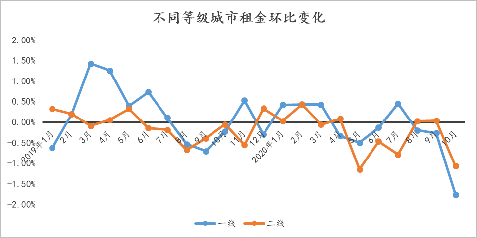 表:全國大中城市2020年10月份租金均價及同環比變化幅度