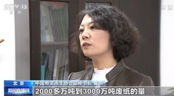 中國(guó)物資再生協(xié)會(huì)副秘書長(zhǎng) 崔燕:以前每年進(jìn)口2000多萬(wàn)噸到3000萬(wàn)噸廢紙的量,它夾雜的其它雜質(zhì)大概30萬(wàn)噸,相當(dāng)于是一個(gè)中型城市一年的生活垃圾。