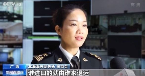 北海海關(guān)副關(guān)長(zhǎng) 宋京蕓:查獲多少退運(yùn)多少,誰(shuí)進(jìn)口的就由誰(shuí)來(lái)退運(yùn),堅(jiān)決不讓固體廢物流入我國(guó)。