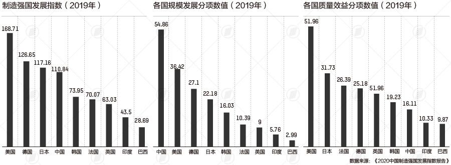 根據中國工程院戰略咨詢中心去年年末發布的《2020中國制造強國發展指數報告》(下稱《指數報告》),我國制造強國發展指數為110.84,仍處于世界主要制造業國家的第三陣列,質量效益在長時間內仍是我國制造業的較大弱項。