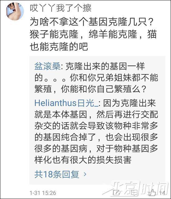 有熱心網友提問,能否通過克隆技術實現華南金貓的延續。結果被告知,近親無法繁殖。