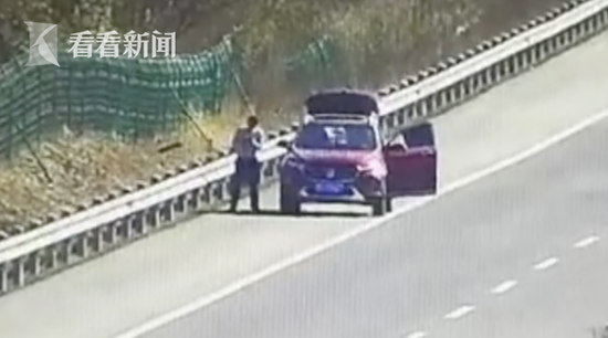 監(jiān)控畫面顯示,當(dāng)天下午2點(diǎn)21分左右在杭長高速往宜興方向92公里附近路段,一輛紅色suv停在了應(yīng)急車道上,不僅駕駛室和后備箱門都打開了,司機(jī)還走出車外拿出手機(jī)翻看了起來。