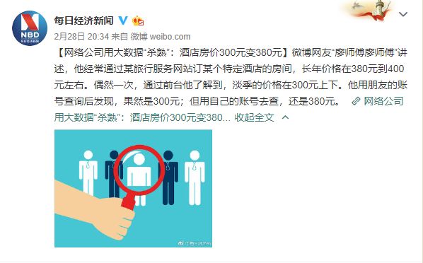 近日,有微博網友自述其被大數據“殺熟”的經歷引起網友關注。