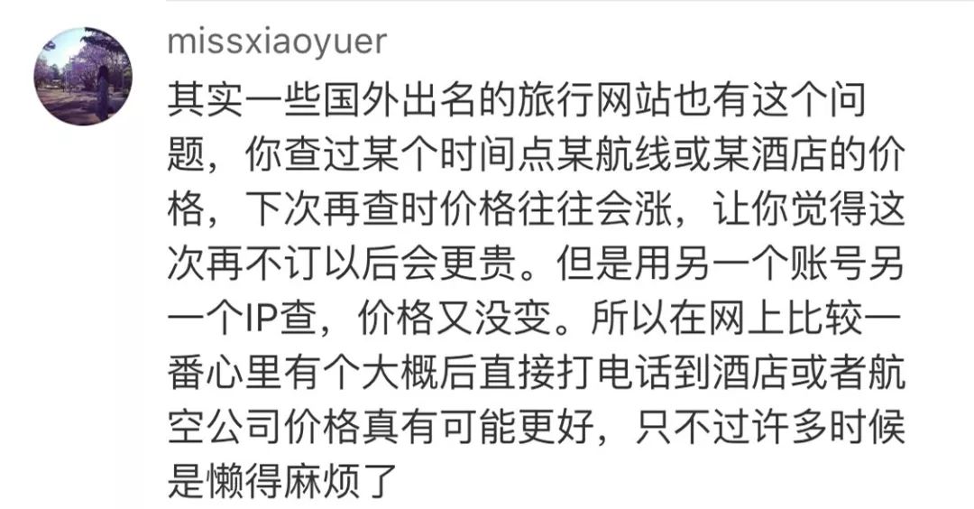 每日經濟新聞(微信號:nbdnews)記者梳理下方網友評論時發現,網絡公司大數據“殺熟”的行為不僅發生于在線旅游預訂平臺和打車軟件,還存在于人們日常生活的通訊套餐、電影訂票、網絡購物中。