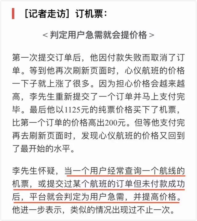 “選好機票后取消,再選那個機票,價格立馬上漲,甚至翻倍。”▼