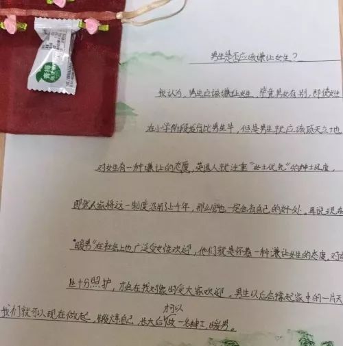 我覺得現(xiàn)在的女孩成熟比男孩早,各方面也不比男孩弱,不用特意謙讓女孩。優(yōu)秀的女孩都是靠自己的才華,來贏得大家的尊重及喝彩。