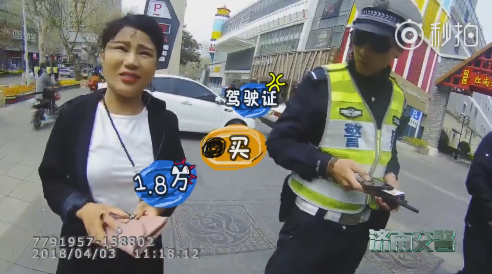 4月10日,濟(jì)南市公安局交通警察支隊(duì)通過官方微博@濟(jì)南交警 發(fā)布了一段調(diào)查處理交通違法司機(jī)的視頻。視頻中,女司機(jī)無證駕駛、有30多條違章、車輛逾期未檢、貼在車窗上的交強(qiáng)險(xiǎn)也系其他車輛的交強(qiáng)險(xiǎn)標(biāo)志。對(duì)此,該女司機(jī)稱自己有駕照,“花1.8萬買的”,并提醒民警拍攝她時(shí)“要拍美點(diǎn)”。
