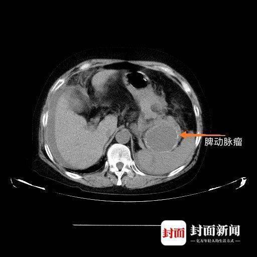 經過CT發現,張阿姨的動脈瘤位于脾門位置,大小已約6CM。而常人的脾動脈大概只有5毫米直徑,也就是說,這三年的“野蠻生長”,動脈瘤讓動脈膨脹了十倍之多,隨時都會破裂。