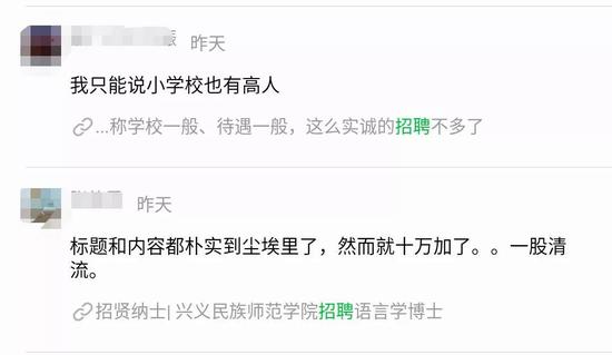 還有某微信公眾號發文時添加“原創標識”,現已刪除據紅星新聞報道,雷院長說,“這種招聘方式很貼心很誠懇,因為興義師院不是很特別的高校,咱們是用誠懇的態度來邀請他們,小地方特別需要人才來建設。”