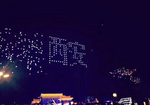 當天在西安永寧門,1374架無人機起飛,匯聚至南門上空編隊飛行表演,擺出西安城墻、西安年最中國、絲綢之路、四十周年等圖案,不過在當晚演出過程中,由無人機組成的畫面出現失誤,起左側變成亂碼,并且有網友爆料,在演出結束回收無人機的過程中,也有不少無人機垂直往下掉落。