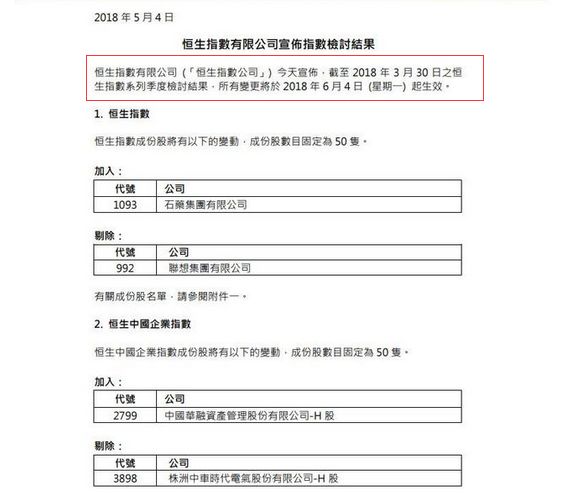 對于本次恒指調整,聯想集團當時回應稱:
