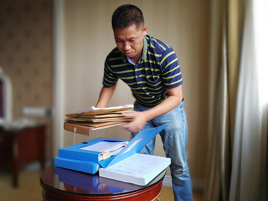今年41歲的羅宗志一頭短發,神情略帶凝重。他穿一條泛白的牛仔褲,背著沉重的雙肩包與澎湃新聞記者見面。放下包后,他從里面取出一大疊案件材料——在5起借貸案件中,他都是被告之一。