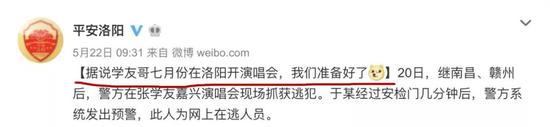 7月,張學友將在洛陽開唱,洛陽警方發博稱:我們準備好了!并在評論區回復:確認過眼神,遇到對的人!