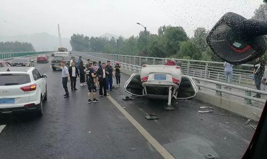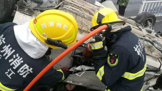 這起車禍發生在6月2日,一輛白色轎車,沖撞富春江大橋護欄,導致翻車。駕駛員被卡住,胸部被護欄刺穿,經消防官兵救援,女性駕駛員被救出,并送往杭州富陽區第一人民醫院救治。