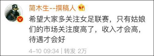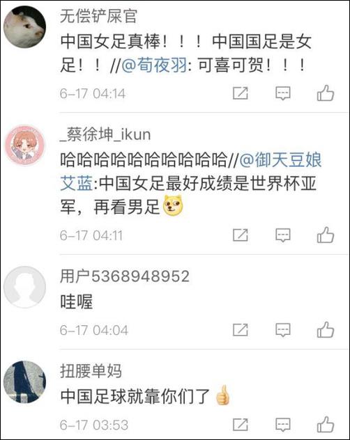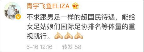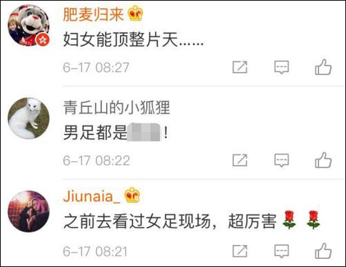 轉發量最高的評論,是呼吁人們多多關注女足。希望女足姑娘們,能得到與成績相匹配的待遇和關注度。