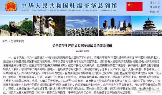 而中國駐多倫多總領(lǐng)館的消息顯示,即便是識破騙局之后安全脫身,沒有錢財損失,部分當事人也遭受不同程度的心理傷害,學習和生活受到嚴重影響。多倫多總領(lǐng)館的領(lǐng)區(qū)是加拿大華人比較集中的區(qū)域。同樣在華人聚居的溫哥華,警方去年接到二十多起類似的報案,在澳大利亞、新西蘭、韓國等地,也有中國留學生和他們的家長陷入類似的騙局。中國駐多倫多總領(lǐng)館的宋晨亮領(lǐng)事介紹,一些海外華人不了解這些騙術(shù),而中國留學生也越來越低齡化,因此成為比較容易受騙的群體。