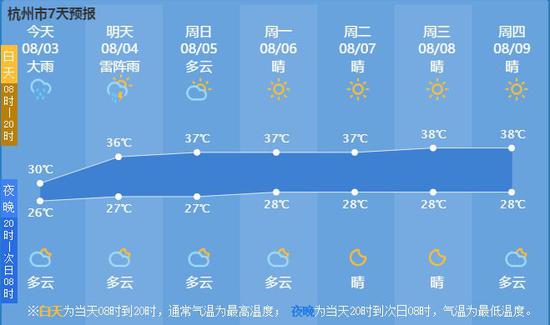 只可惜,涼爽是短暫的。明天起杭城又要重回高溫陣營(yíng)——從目前預(yù)報(bào)來(lái)看,明天最高氣溫又將火速回到36℃,8月5日到8日最高氣溫都是清一色的37℃。