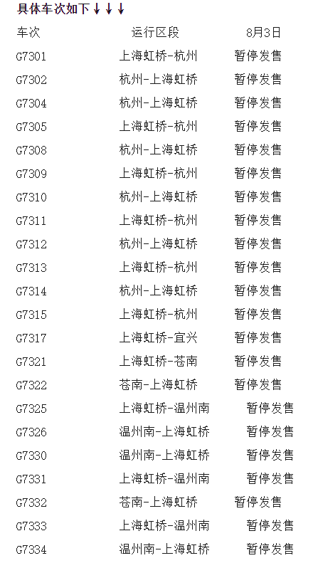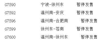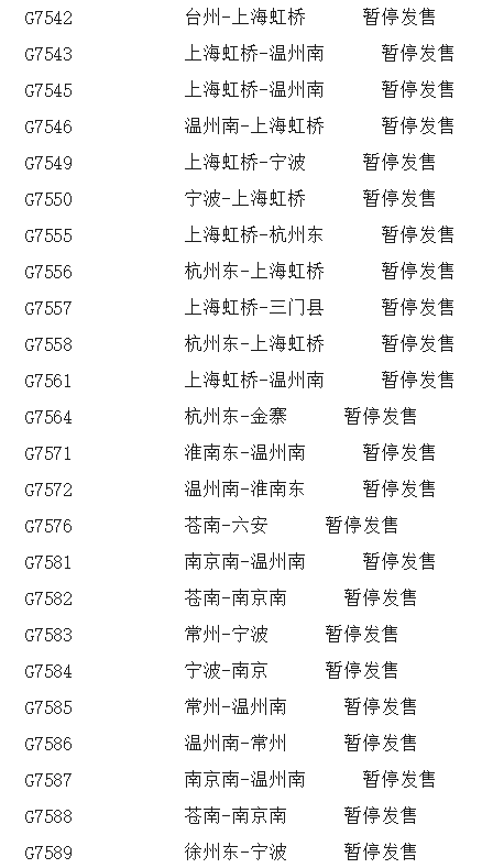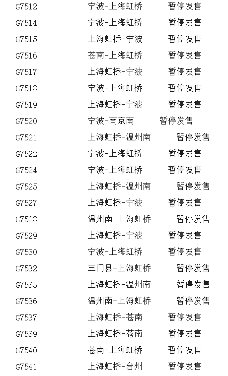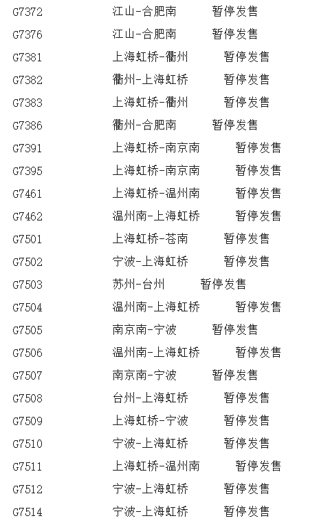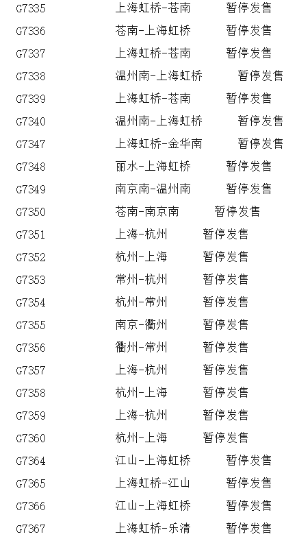 錢(qián)報(bào)記者發(fā)現(xiàn),目前暫停發(fā)售的列車主要是杭州開(kāi)往上海、寧波、溫州、臺(tái)州等途徑滬杭高鐵、杭甬高鐵、甬臺(tái)溫鐵路等高鐵和動(dòng)車。