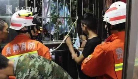8月12日深夜,貴州省貴陽市云巖區漁安新城B13棟附近,一名年輕女子從自家5樓陽臺墜下,被家人和4樓的住戶牢牢抓住,并控制在了4樓的防盜窗外。